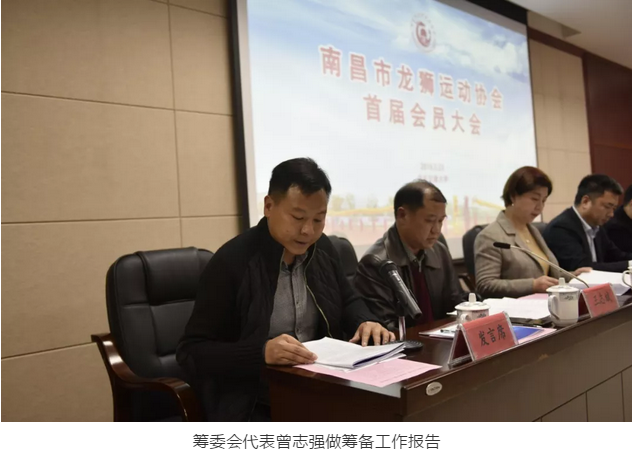 南昌市体育总会秘书长伍革宣读同意成立南昌市龙狮运动协会的批复文件