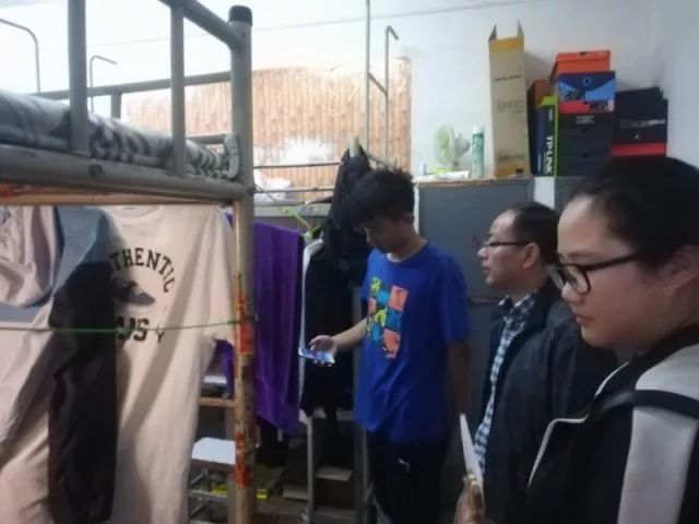 4月16日19:00——20:45,院党委副书记黄书记,辅导员温浩,宋云翔,柴冬霞前往学生公寓17栋和21栋进行突击检查。检查范围主要针对违规用电,大功率电器,防火防盗和寝室卫生情况。