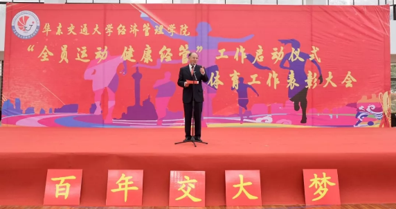 为响应学校“阳光体育运动”的号召, 10月26日,校党委书记万明出席经管学院“全院运动、健康经管”工作启动仪式暨体育工作表彰大会,并为“特别贡献奖”获得者颁发荣誉证书,为学院竞赛队队长及兴趣队负责人颁发聘书。强调同学们要走出宿舍、走进操场、走进阳光,营造花椒人独特的体育文化。