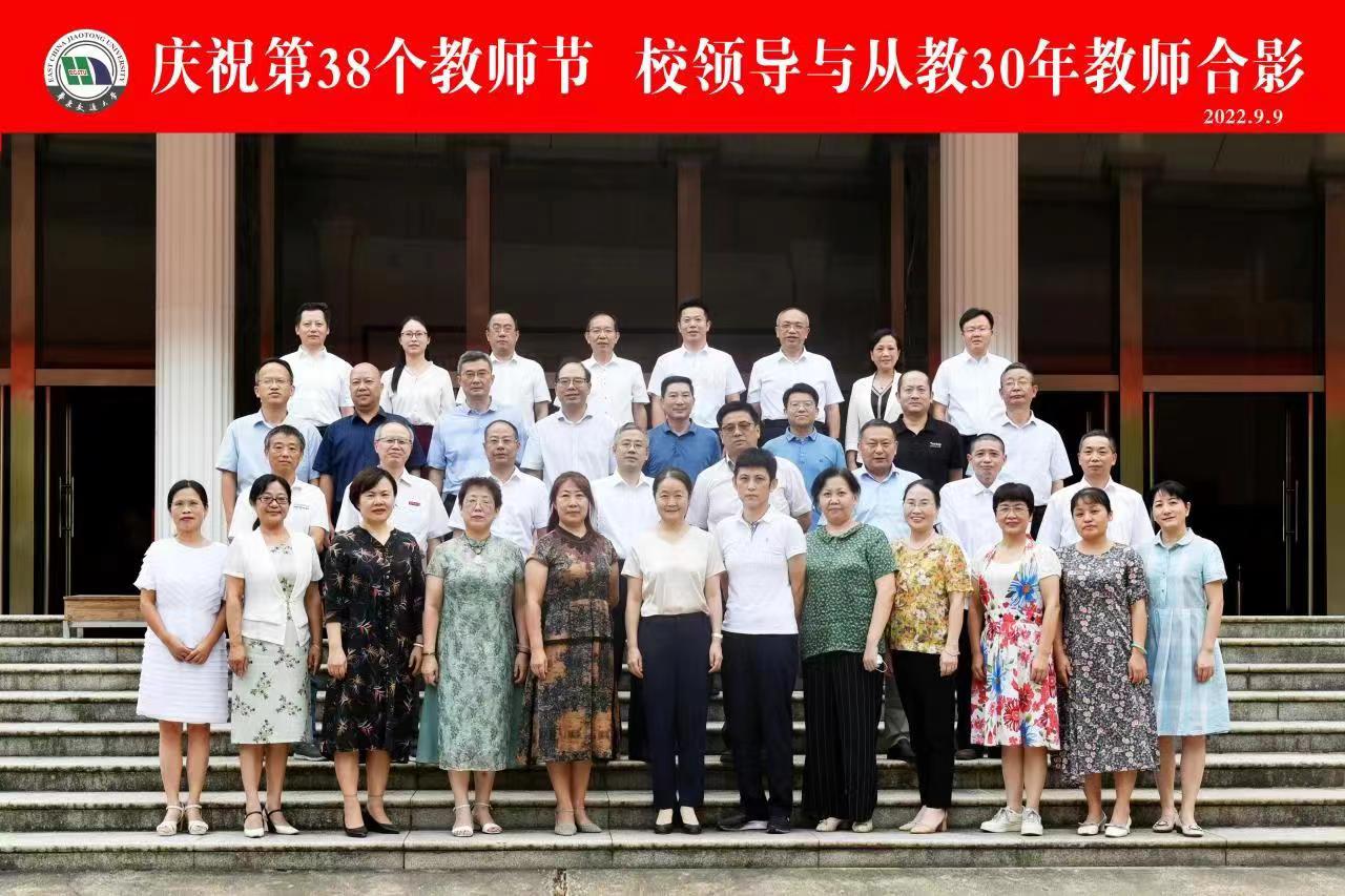 教师代表欧阳志刚、学生代表陈筱玥相继发言。会前,校领导与“从事教育工作满30年教职工”合影。