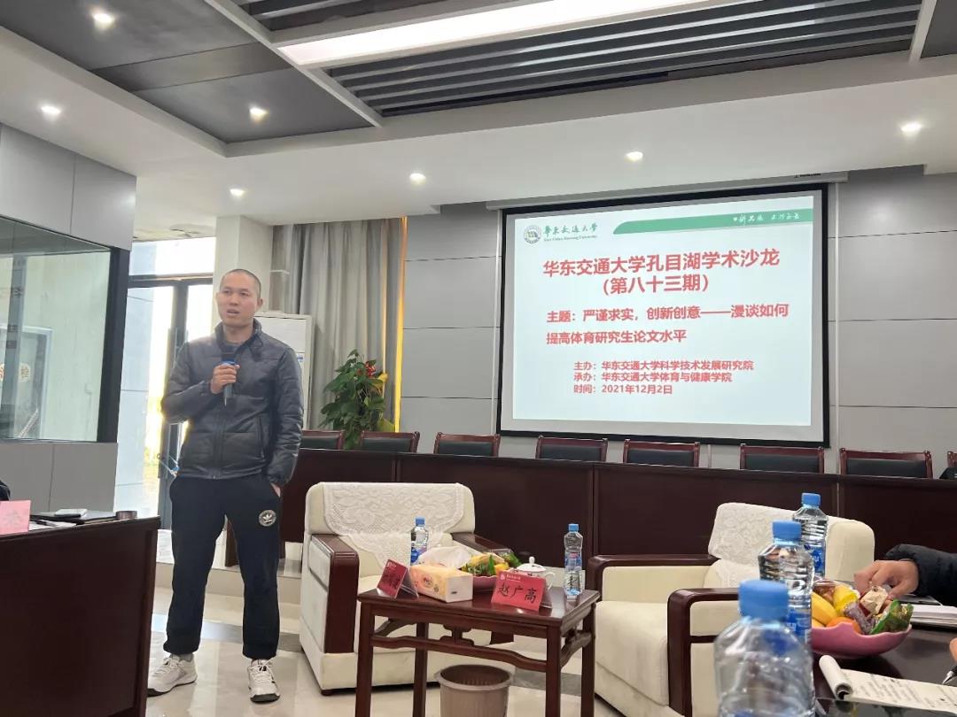 会议室顺利举行。本次沙龙特邀南昌大学体育学院副院长、研究生导师赵广高博士为主讲嘉宾,分享学术论文撰写经验。嘉宾分享主题围绕“体育学论文写作常见问题解析”展开,海角
